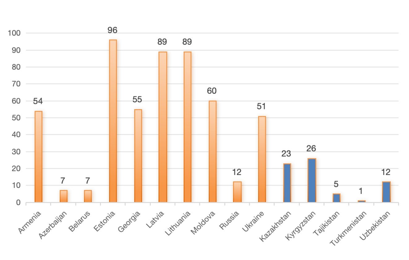This trend is not unique to Uzbekistan. Across Central Asia, governments rooted in the Soviet legacy maintain centralized control through authoritarian practices, stifling democratic transitions. Three decades after the fall of the Soviet Union, authoritarian regimes dominate the region, where only the three Baltic states are classified as "Free" by Freedom House. [2] In contrast, nations like Azerbaijan, Kazakhstan, and Uzbekistan are rated as "Not Free," with Uzbekistan and Kazakhstan scoring eleven and twenty-three out of one hundred, respectively (Table 1). Kyrgyzstan, despite brief democratic openings, scores only twenty-eight, well below the threshold for partial democracy.